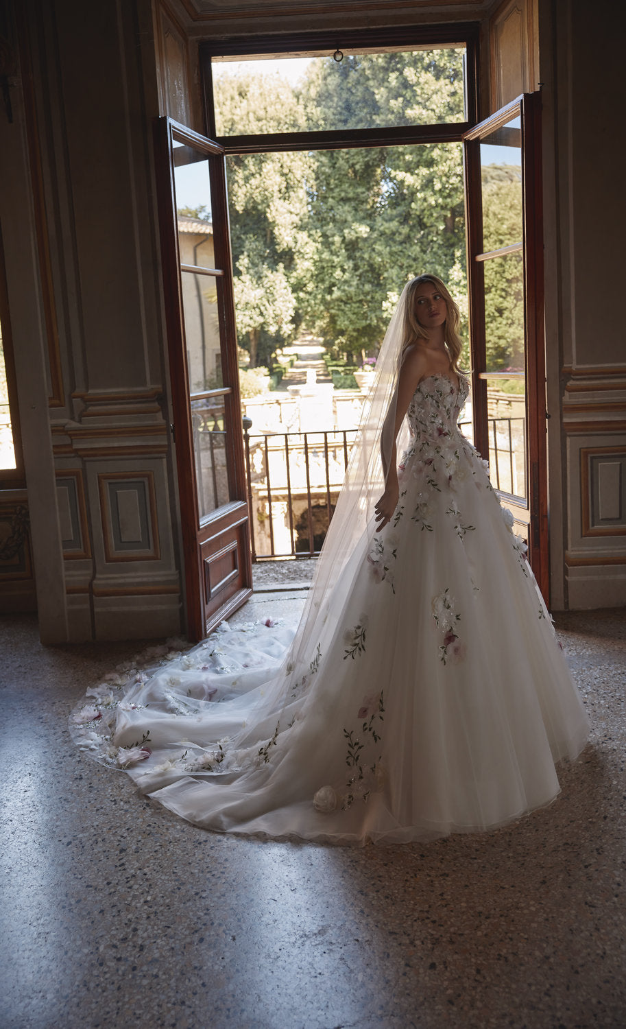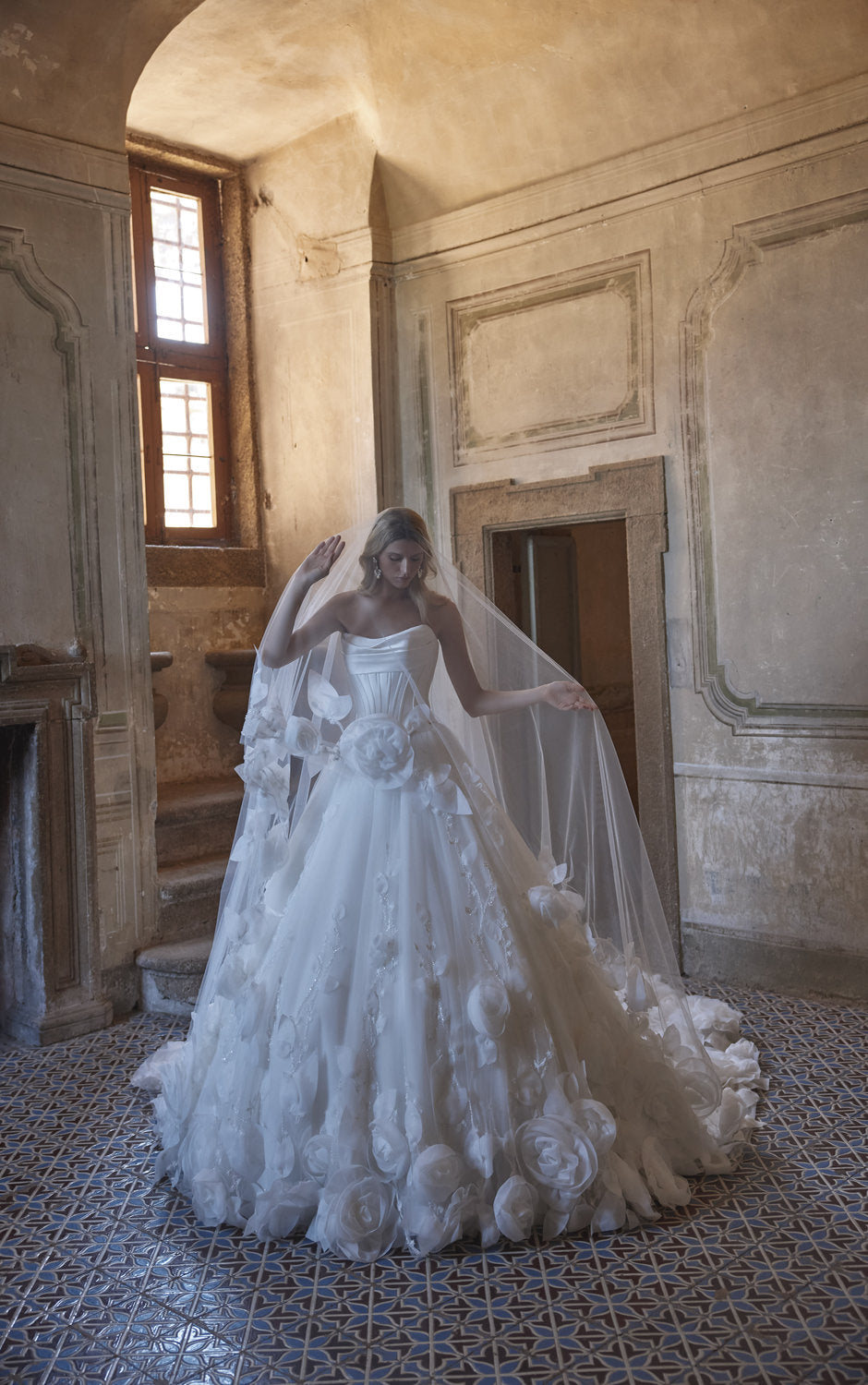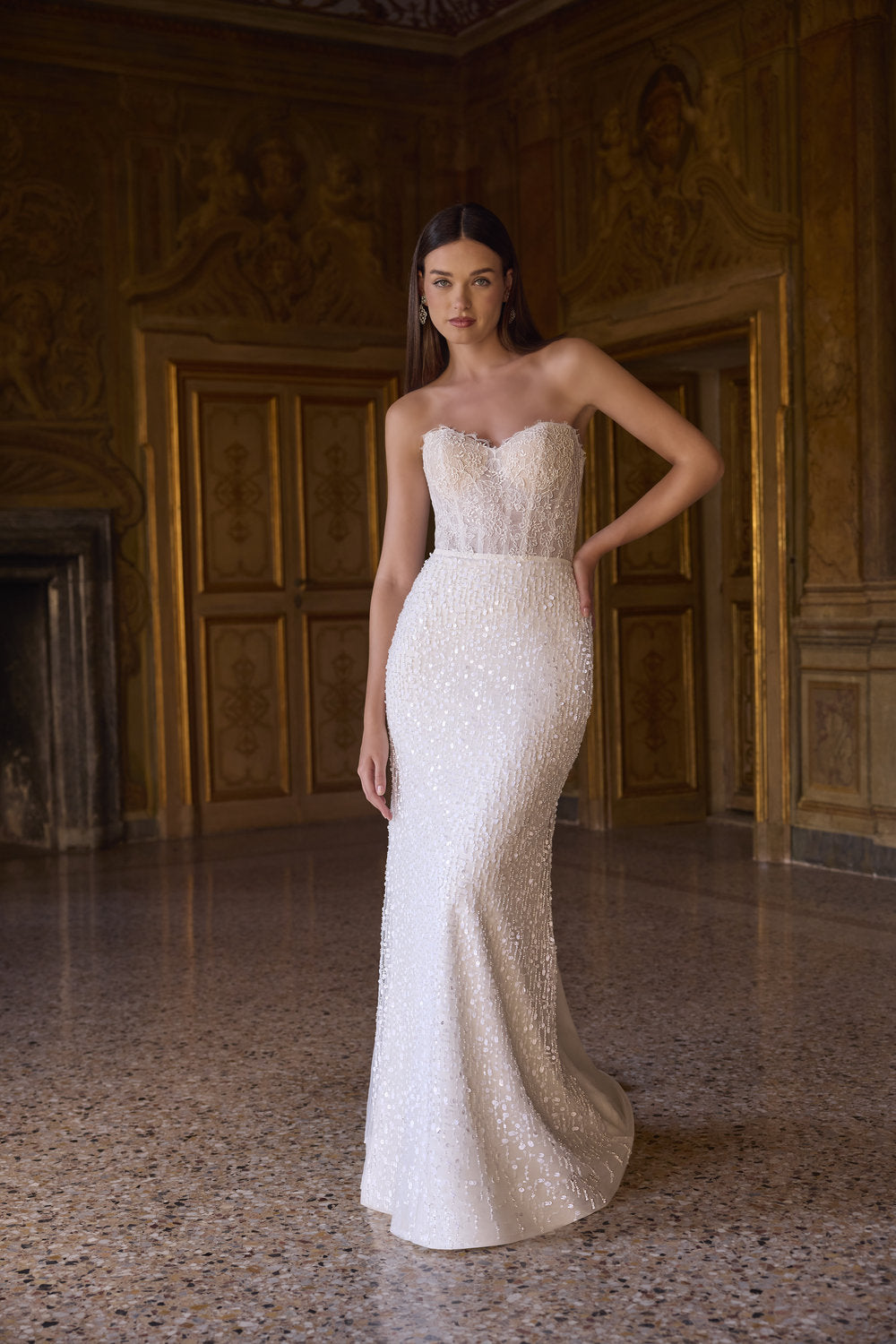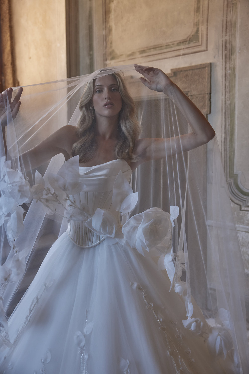 Offering brides an opportunity to embrace their individuality and uniqueness with a perfect blend of fashion-forward chic and timeless elegance Veni Infantino bridal wants our brides to step into a world of enchantment and romance with this breathtaking collection, becoming testament to the artistry and creativity that defines our iconic brand.