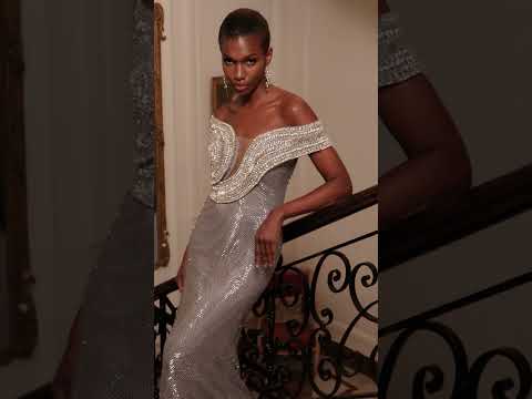 Turn every gaze with this stunning, show-stopping fitted mesh gown. A structured asymmetrical neckline meets a deep V illusion, while delicate cap sleeves and intricate, heavy beadwork shimmer with every movement. Designed to captivate, this gown is the epitome of modern glamour and refined elegance.