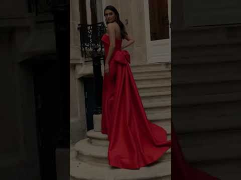 A stunning fit-and-flare silhouette crafted for timeless sophistication. This elegant gown features a detachable train adorned with a graceful bow, allowing you to transform your look from refined chic to dramatic glamour with effortless ease.