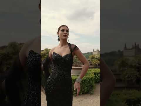 A show-stopping red carpet gown featuring a strapless sweetheart neckline and a full-length sequin silhouette. The sheer bodice and daring mid-thigh slit add allure, while a sheer wrap cape detail brings movement and drama, creating a glamorous and unforgettable statement piece.