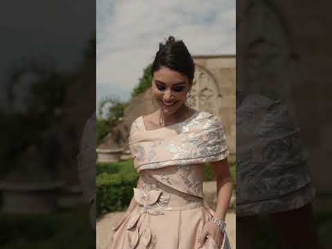 A show-stopping strapless ballgown featuring a striking botanical print and 3D floral detailing on the waistband. Complete with an off-the-shoulder wrap, this formal gown combines dramatic elegance with romantic sophistication.
