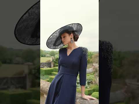 Exude timeless sophistication with this tailored navy jumpsuit, crafted with a flattering cinched waist and wide-leg silhouette. Featuring a graceful V-neckline, elegant three-quarter sleeves, and delicate embellishment on the shoulders, this design blends modern elegance with classic charm.
