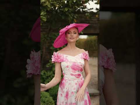 Chic and graceful, this ankle-length chiffon dress features an off-the-shoulder neckline with 3D floral cap sleeves, a structured fitted bodice, and a delicately beaded waistband. A modern yet classic choice for the mother of the bride or groom.