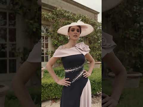 Gracefully modern with timeless sophistication, this elegant colour-block midi dress is perfect for the stylish mother of the bride. Featuring a asymmetrical silhouette with a soft draped shoulder detail and an oversized floral motif. Sparkling embellishments add subtle glamour at the waist and neckline, while the flowing skirt ensures effortless movement.