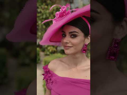A modern off-the-shoulder A-line dress featuring a structured, pleated bodice and flowing pleated skirt. Delicate 3D floral appliqués adorn the neckline, adding a couture-inspired, feminine touch to this sophisticated silhouette.