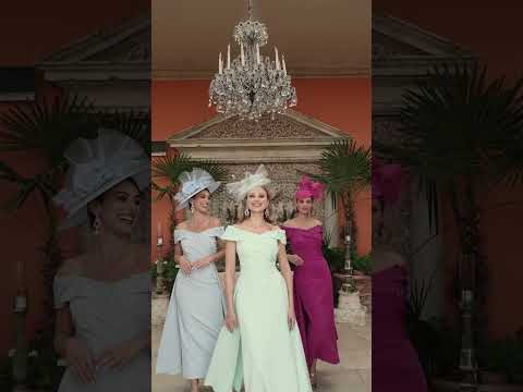 “A classic fit-and-flare crepe dress featuring a flattering floral wide V-neckline and cap sleeves. The fitted pleated bodice is complemented by a unique half overskirt, adding graceful movement to a sophisticated silhouette.
