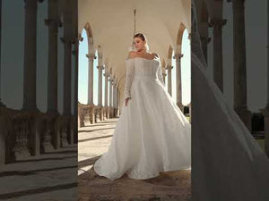 A classic strapless ballgown wedding dress, adorned with long sheer sleeves and an open zip-back design Dress and Stole Available with Fixed Bodice Lining as Style 63139F